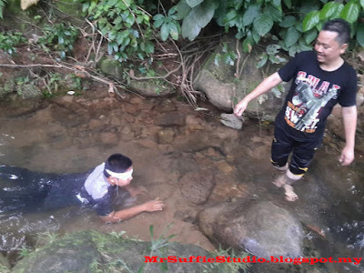 7. Aktiviti lasak tutup mata pada waktu siang dengan berjalan mengikut arahan fasilitator di darat dan juga merentasi aliran air sungai dengan rintangan yang di sediakan.